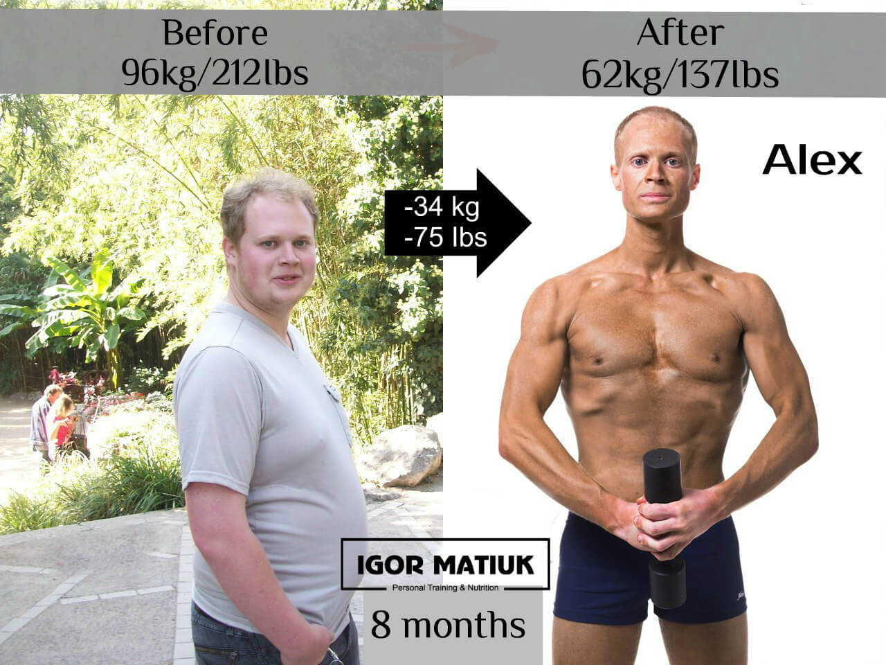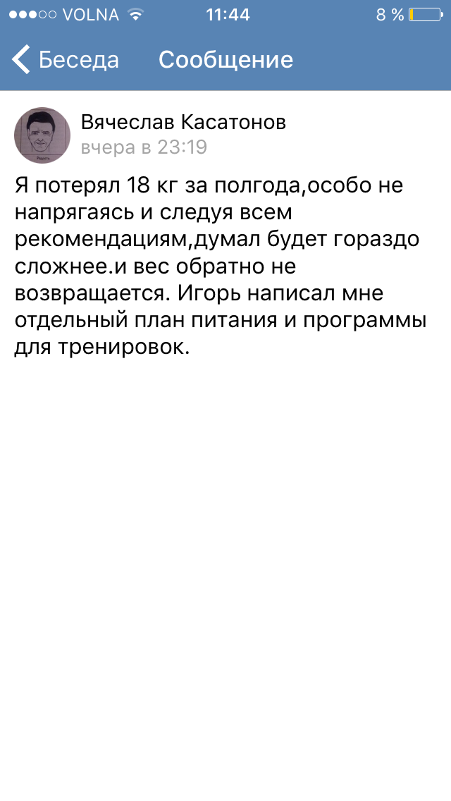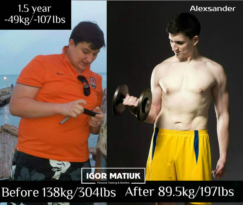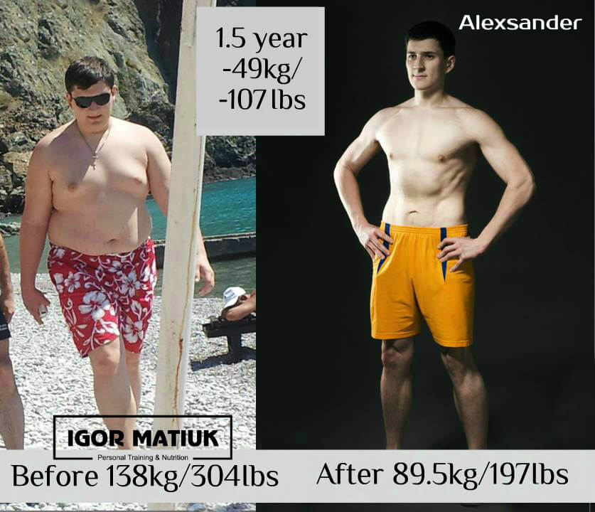 49 kg is defiantly a visible result. Moreover, it should be added that Sasha has significantly improved his lung function, as well as cardiovascular health and function, and the strength of his joints and spinal column. All this is the result of a correctly selected nutrition plan and highly developed training techniques. It was a tremendous job, but together we perfectly coped with it.