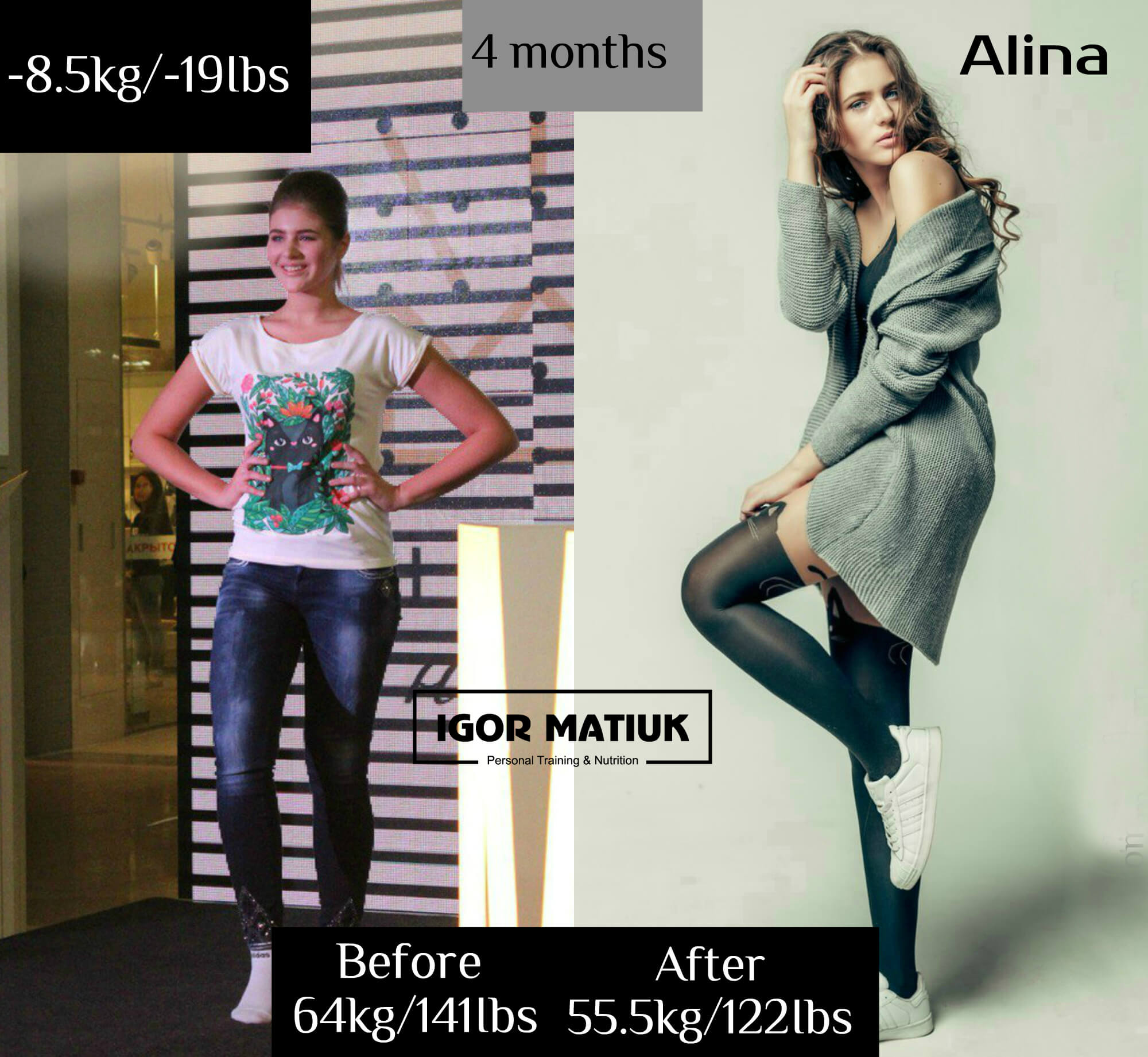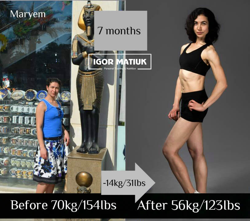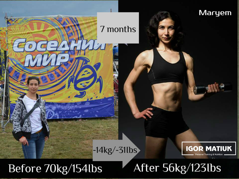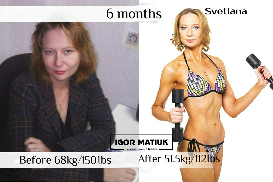 Sveta is a great person and an excellent role model for all women. She has always strictly followed my diets and attended training regularly. Consistency is the key to success. Sveta is another example of how a person can change their own body (and herself in general) beyond recognition in just six months.